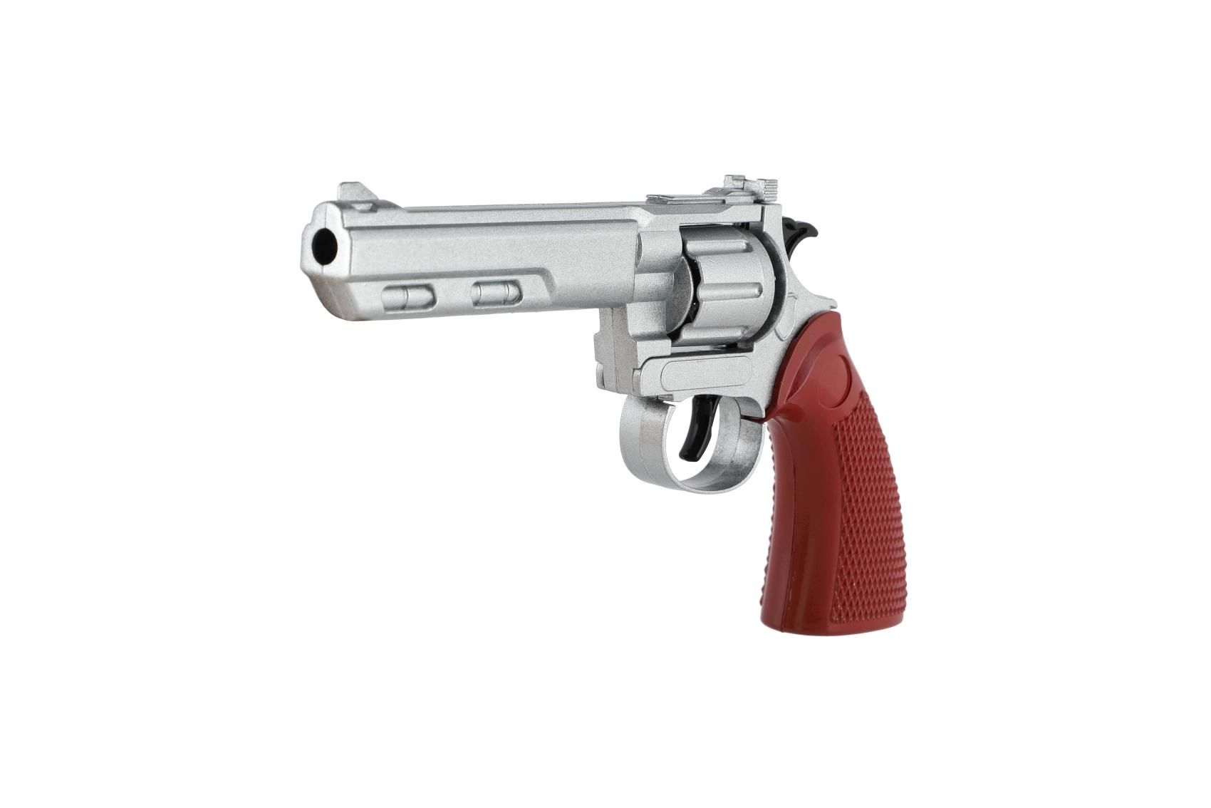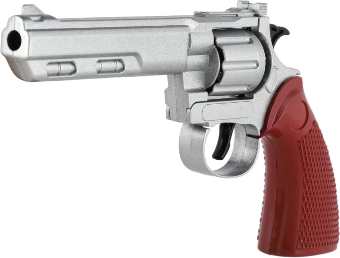 Il corpo del revolver è in metallo, assicurando un aspetto autentico e una maggiore resistenza nell’uso quotidiano.