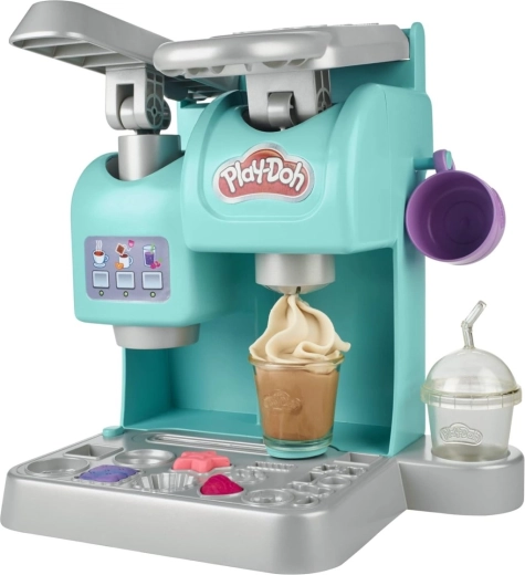 Il set è progettato come una piccola caffetteria che sviluppa creatività, motricità fine e gioco di ruolo. Con la “macchina del caffè” interattiva i bambini riempiono i bicchieri con la pasta PLAY-DOH, ruotano e li spostano verso la stazione dei “topping”, dove creano una soffice “panna montata” e altre decorazioni. Grazie ai vasetti arcobaleno, scintillanti e bicolore, le loro creazioni saranno sempre originali.