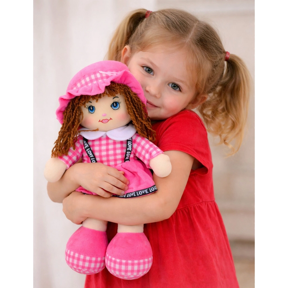 Questa soffice bambola con vestitino rosa a quadretti farà felici i bambini fin dalla tenera età. Grazie alla struttura leggera e morbida si tiene, si porta e si abbraccia con facilità, favorendo senso di sicurezza e sviluppo emotivo. I corti capelli filati, gli occhi e il sorriso ricamati danno alla bambola un’espressione dolce e assicurano un gioco sicuro senza elementi taglienti.
