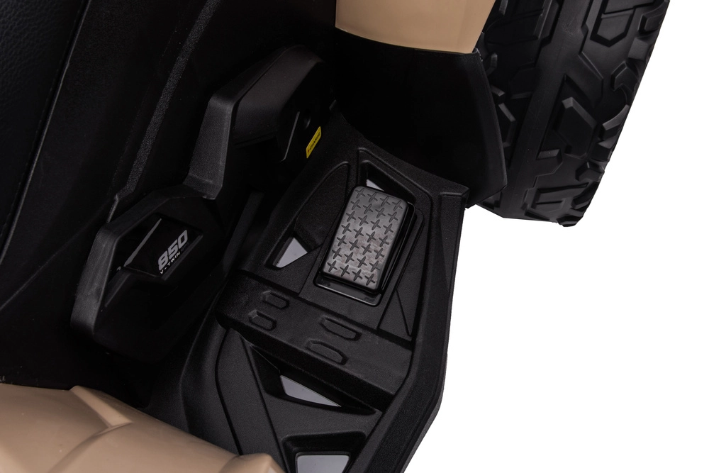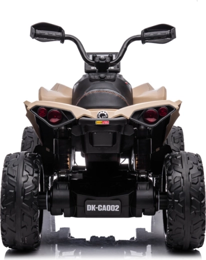 Elegante quad elettrico per bambini ispirato agli ATV CAN‑AM in colore khaki, offre ai bambini tanto divertimento in cortile e al parco. Grazie alle robuste ruote off‑road, all’aspetto con trazione 4x4, alla sella confortevole e alle luci LED funzionanti, appare realistico ed è pronto per avventure quotidiane.