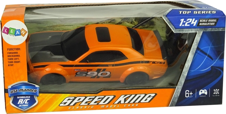 Goditi la velocità con un'auto RC realistica in scala 1:24. Struttura leggera e resistente, design sportivo, vivace colore arancione e semplice controllo avanti/indietro e sterzata che piacerà a piccoli e grandi piloti. Giocattolo ideale per sviluppare la motricità fine e la coordinazione.