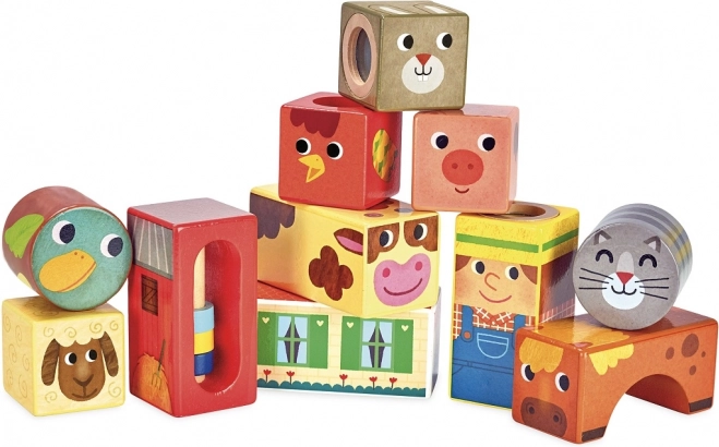Vi presentiamo Vilac Blocchi sonori in legno Fattoria, un ottimo giocattolo per piccoli esploratori. Questo set contiene undici blocchi di legno, ciascuno con diversi motivi della fattoria, che producono suoni diversi quando vengono ruotati e agitati.
