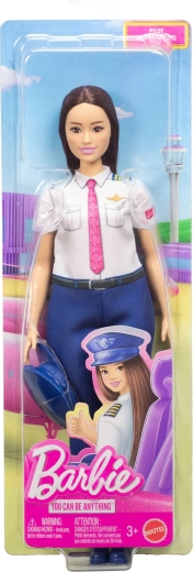Ispirata al mondo professionale, la bambola BARBIE Carriera Pilota in uniforme da pilota motiva i bambini a sognare in grande e a scoprire il mondo delle professioni. Indossa un'uniforme da pilota dettagliata con camicia bianca con spalline, cravatta rosa e pantaloni blu, completata da berretto blu e scarpine rimovibili. Gli arti snodati favoriscono il gioco di ruolo creativo e scenari realistici dalla cabina di pilotaggio.