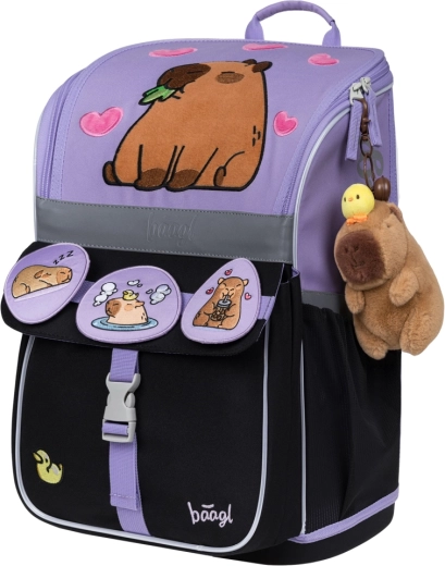 Gli elementi riflettenti migliorano la visibilità al crepuscolo, mentre le spille intercambiabili e il portachiavi peluche consentono di personalizzare facilmente la cartella.