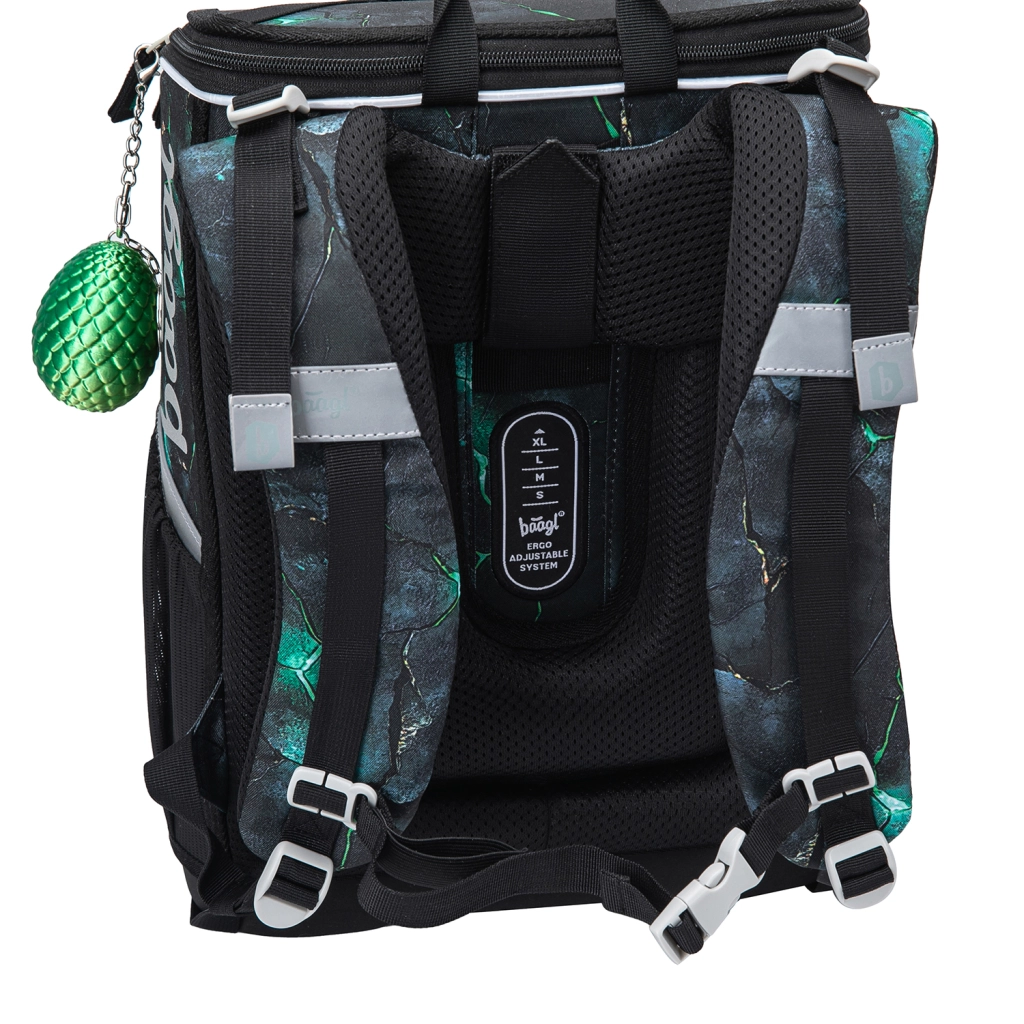 La cartella BAAGL Zippy draghi combina ergonomia studiata e robustezza con un design attraente. Grazie al sistema dorsale scorrevole ERGO ADJUSTABLE si regola facilmente in tre misure, così può letteralmente crescere con il bambino. Spallacci completamente regolabili e imbottitura traspirante assicurano una vestibilità confortevole sulla schiena e una corretta distribuzione del peso.