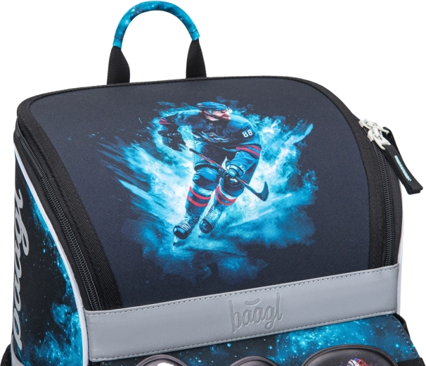 Il set scolastico completo BAAGL Zippy Hockey per la scuola primaria include una cartella ergonomica, un capiente astuccio e una pratica sacca. Offre un sistema dorsale regolabile, elementi riflettenti di sicurezza, affidabili cerniere YKK e materiali resistenti e idrorepellenti con motivo hockey, per facilitare ogni giornata scolastica dei bambini.