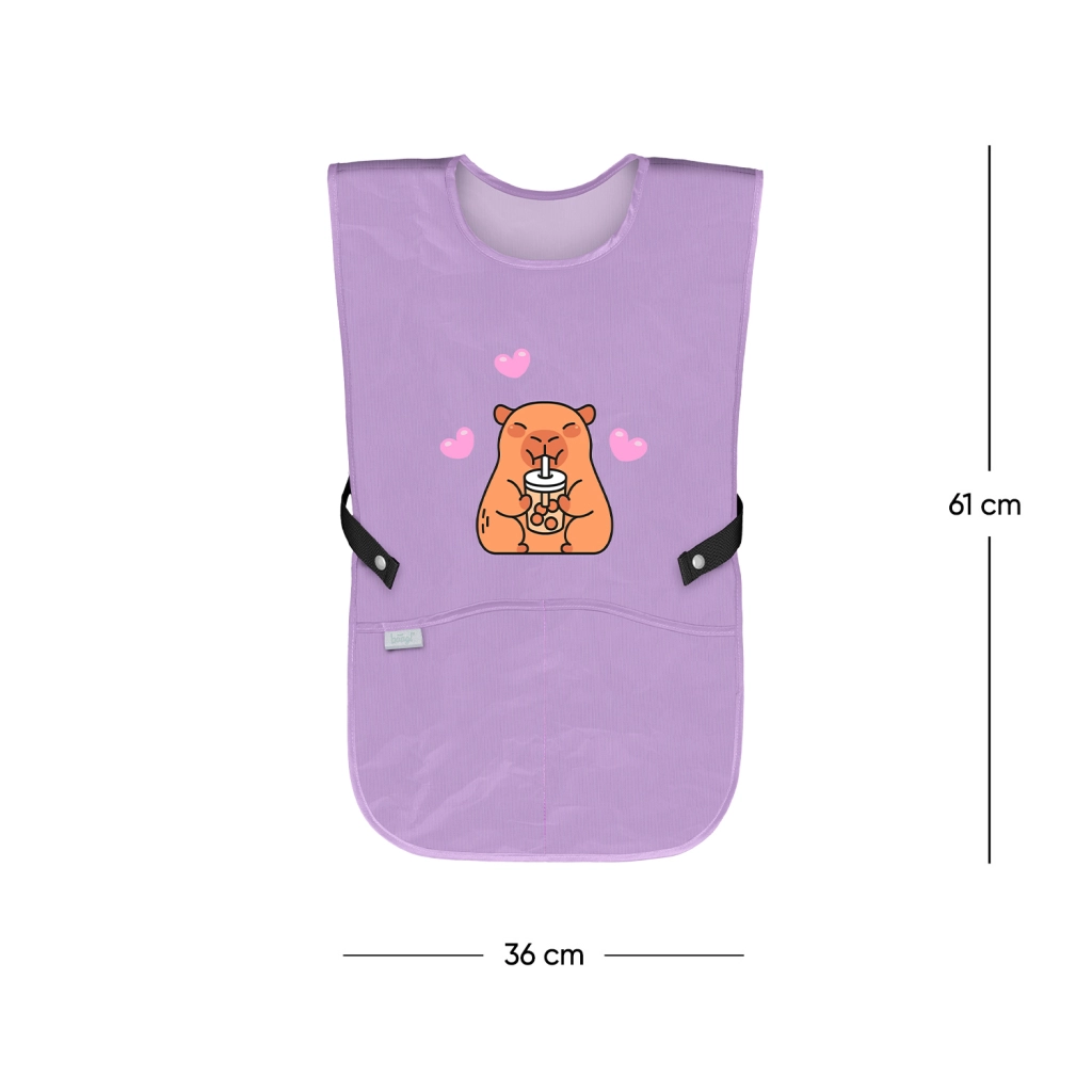 Cercate una protezione affidabile per i vestiti dei piccoli creatori? Questo grembiule per bambini, leggero e resistente, con un motivo giocoso di capibara è ideale per educazione artistica, lavori manuali, laboratori e attività creative a casa. La superficie lavabile è facile da mantenere: residui di colori, colla o cibo si rimuovono in un attimo.