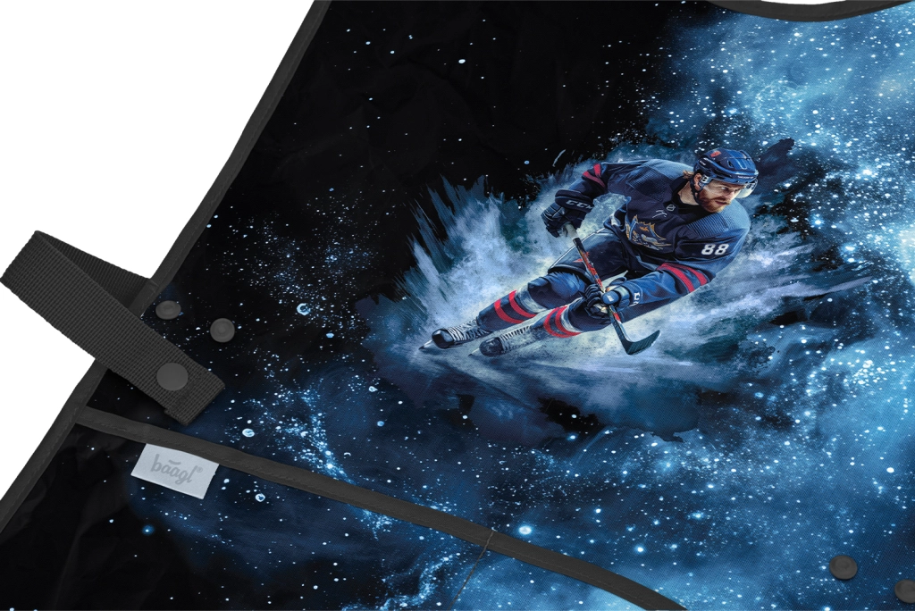 Grembiule per bambini dal design con tema hockey, ideale per la scuola e per i laboratori. Grazie al materiale resistente e lavabile si pulisce facilmente e protegge i vestiti da colori, colle e piccole impurità.