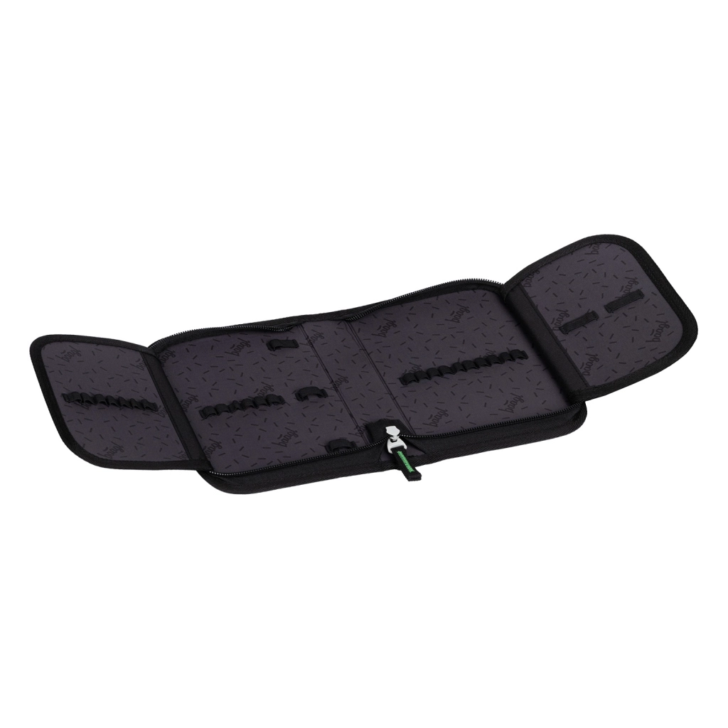 Pratico astuccio scolastico con motivo di draghi per un'organizzazione chiara del materiale da scrittura. Offre un solo piano con due alette, una zip YKK di qualità, taschina per piccoli oggetti e finestra per l'orario. Grazie alla possibilità di apertura completa l'orientamento del contenuto è semplice e i fermagli elastici per matite e pennarelli mantengono tutto al proprio posto. Realizzato in materiale riciclato, fornito senza contenuto.
