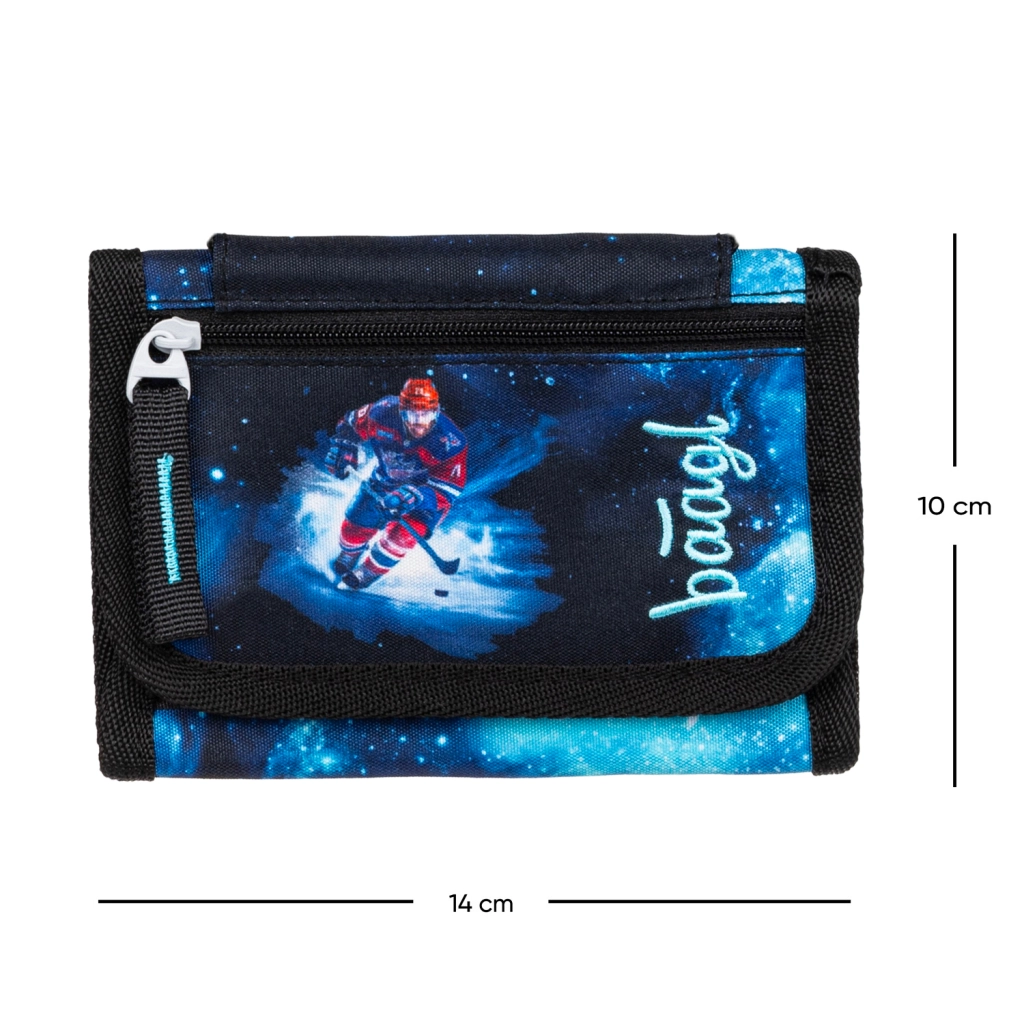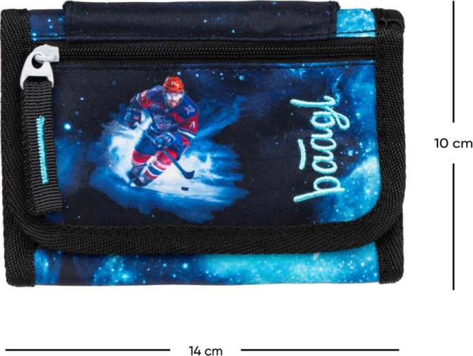 Portafoglio da collo BAAGL leggero e resistente con motivo hockey, offre un trasporto sicuro grazie al laccetto regolabile con chiusura di sicurezza, una chiusura a strappo affidabile e una pratica taschina per le monete. Ideale per i bambini per la scuola, le attività e il tempo libero.