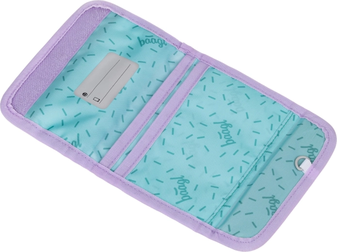 Il pratico portafoglio BAAGL Lavender è ideale per i bambini, a scuola e nel tempo libero. Grazie al cordino da collo, i più piccoli hanno sempre tutto l’essenziale a portata di mano e in sicurezza. L’organizzazione interna con scomparti per carte e tag con nome aiuta a mantenere l’ordine, mentre la taschina frontale con zip custodisce monete e piccoli oggetti.