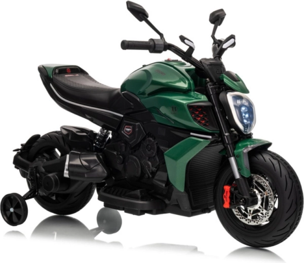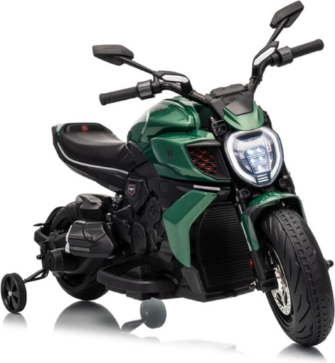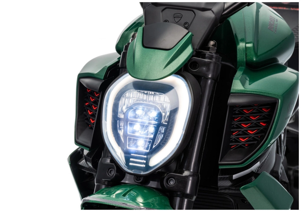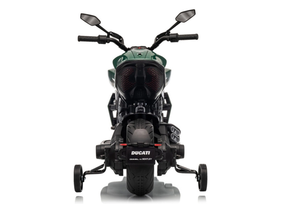 Elegante moto elettrica per bambini ispirata al modello DUCATI DIAVEL V4, offre divertimento sicuro e le prime esperienze di guida. Grazie alle rotelle di supporto la guida è stabile e adatta anche ai principianti. La moto offre dettagli realistici, luminoso faro a LED e comandi confortevoli sul manubrio. Ideale per il gioco all’aperto e per sviluppare equilibrio e coordinazione. Rotelle stabilizzatrici, faro LED, design realistico e alimentazione a batteria conquisteranno i piccoli piloti e i loro genitori.