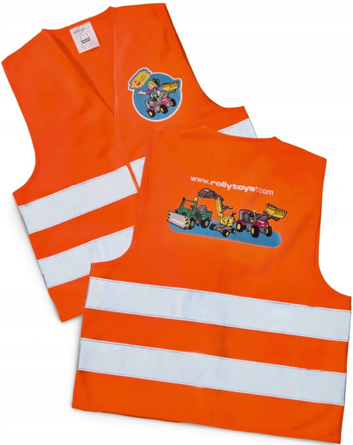 Incluso un gilet riflettente arancione che aumenta la sicurezza del bambino durante il gioco all’aperto, sul trattorino e anche in bici al crepuscolo.