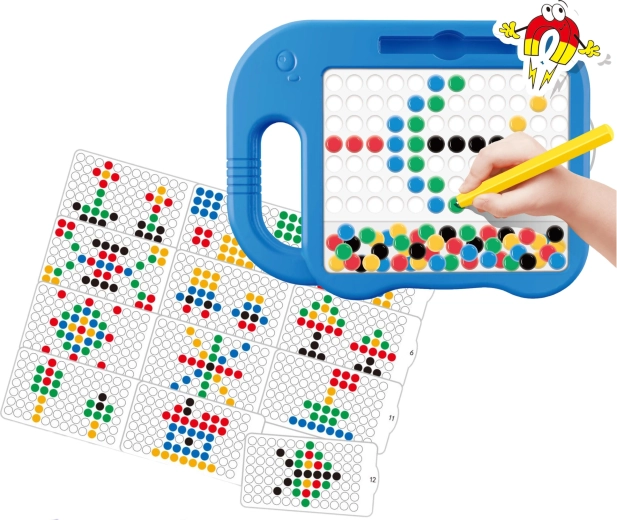 - Dotazione ricca: penna magnetica, 84 perline magnetiche e schede modello bifacciali (per un totale di 24 motivi).