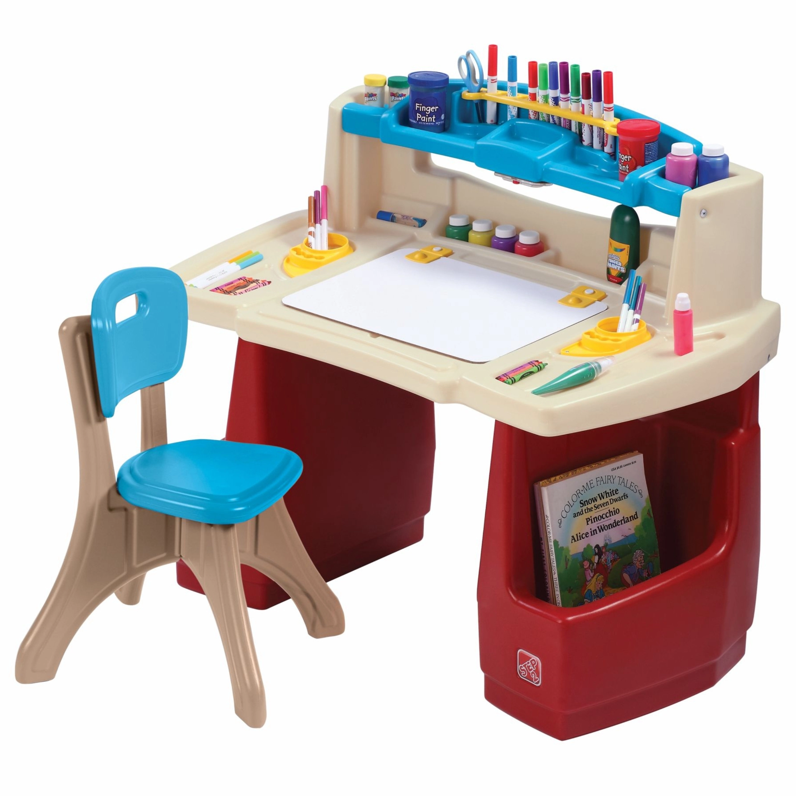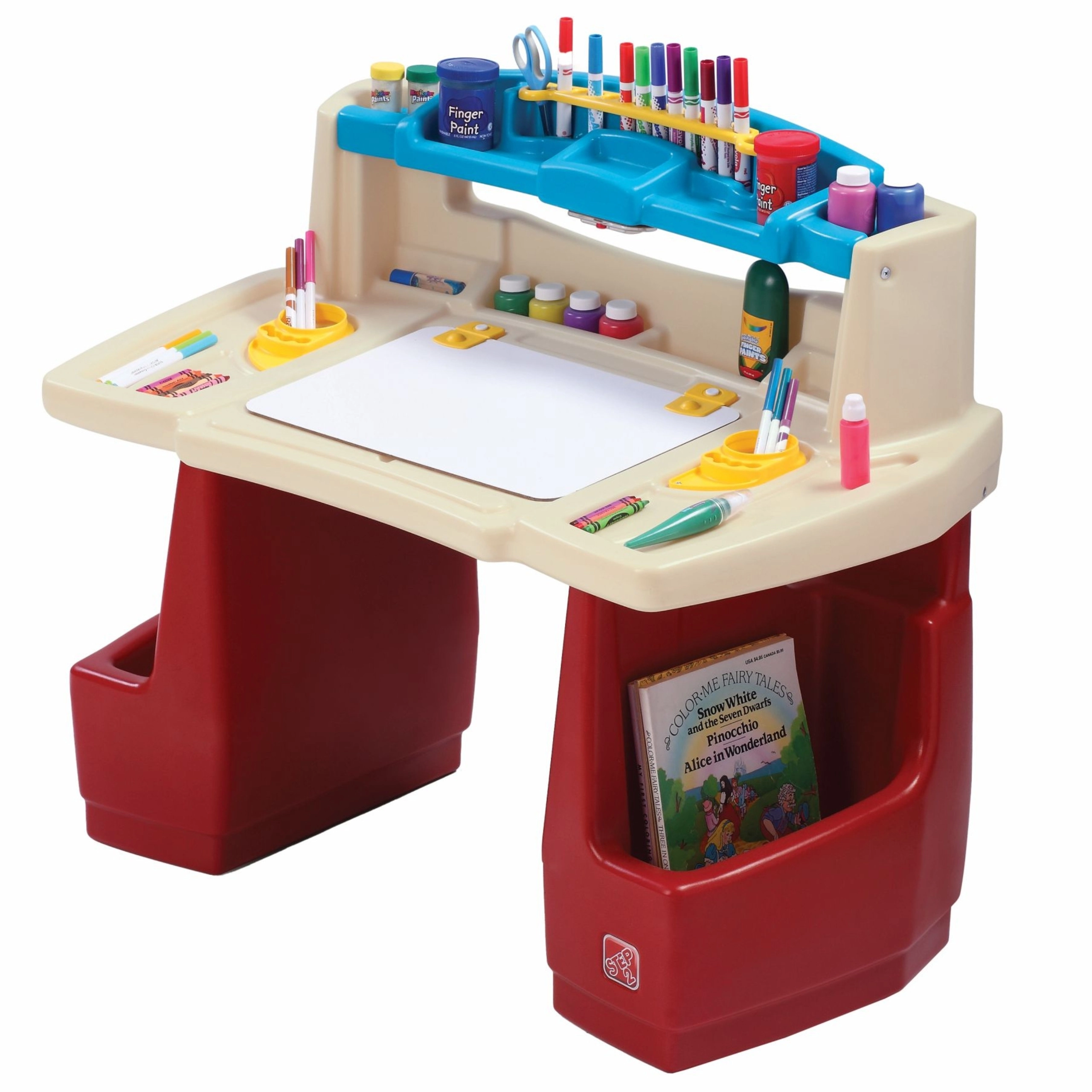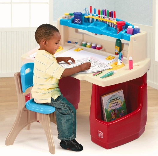 Il set STEP2 Deluxe Art Master trasforma la cameretta in un atelier ispirante. I bambini hanno a disposizione un’ampia area di lavoro con lavagna cancellabile a secco ribaltabile, facile da pulire e con spazio aggiuntivo nascosto per gli accessori. L’organizer superiore, i cestelli laterali e gli scomparti verticali tengono pastelli, colori, libri e tablet sempre a portata di mano.