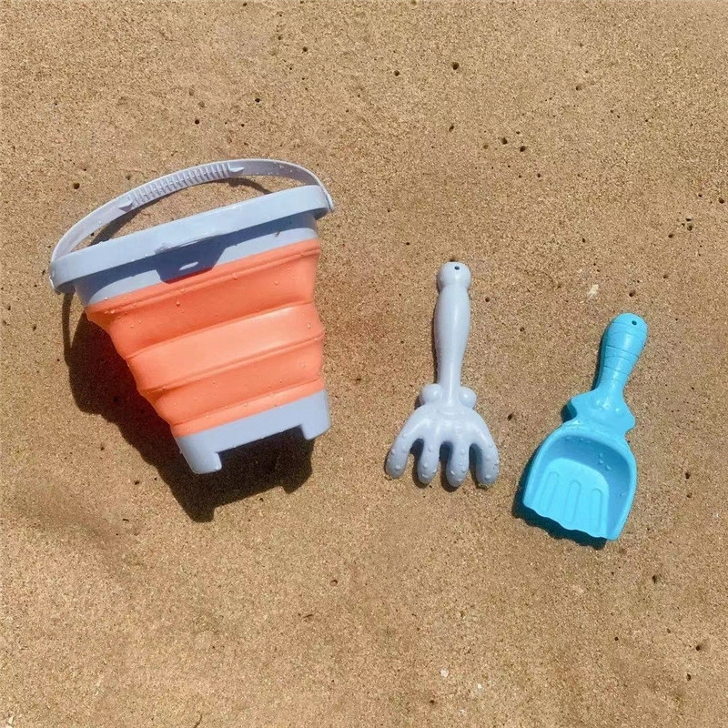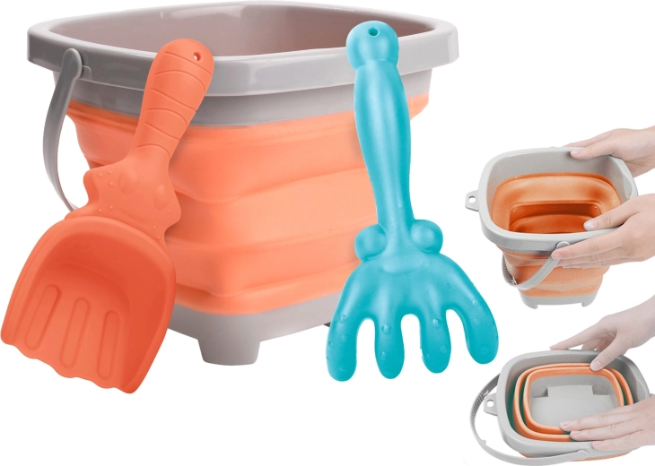 Set pieghevole per sabbia (secchio + paletta + rastrello)