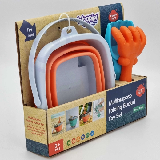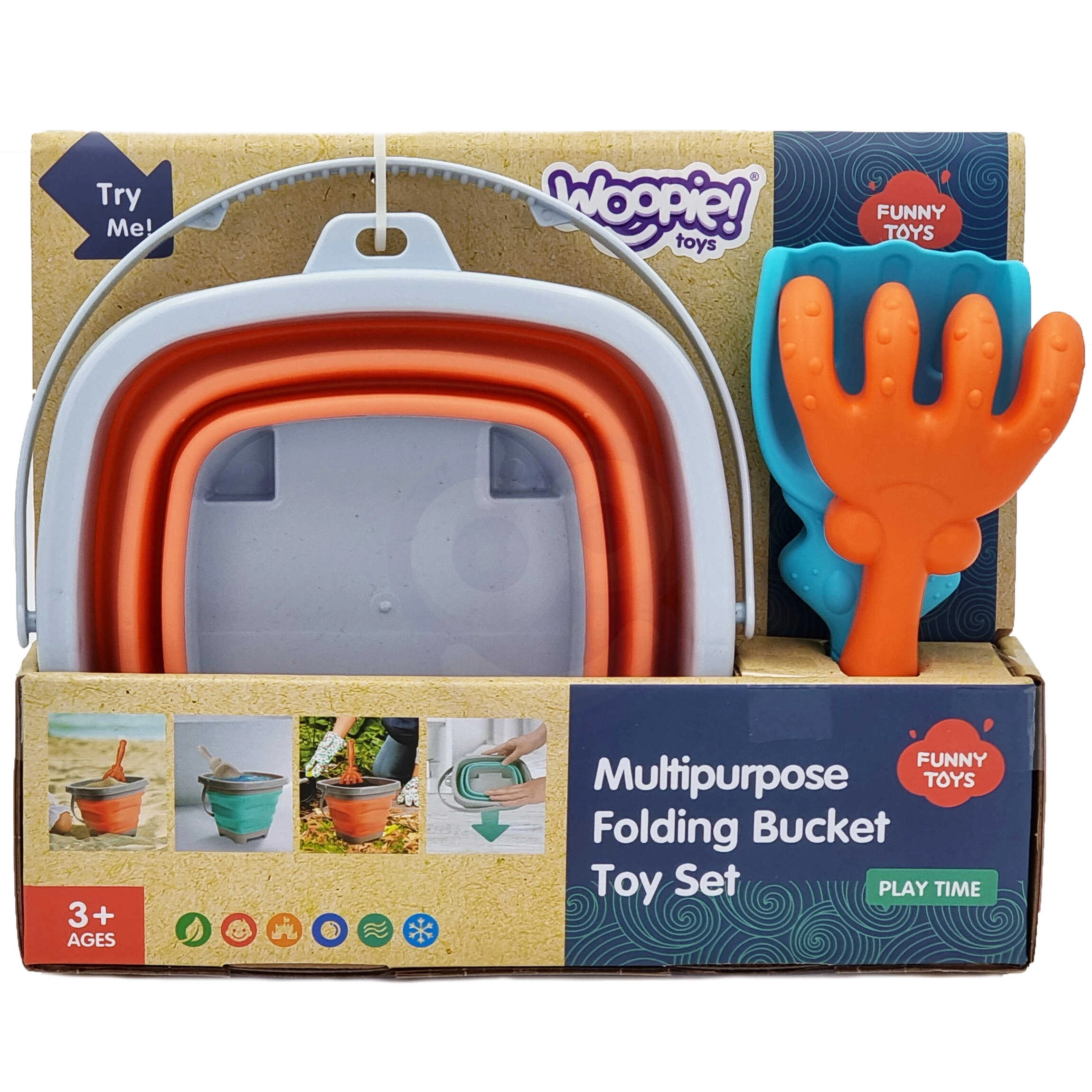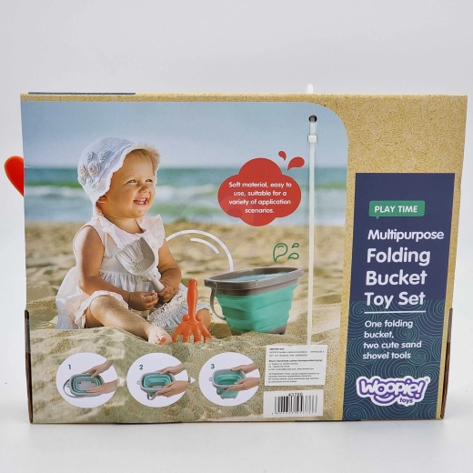 Il set WOOPIE per sabbia e spiaggia per bambini include un secchio pieghevole in silicone da 5 l, una paletta e un rastrello. Grazie alla struttura pieghevole si trasporta facilmente, fa risparmiare spazio nello zaino e nel passeggino ed è ideale per sabbia, spiaggia e giardino.