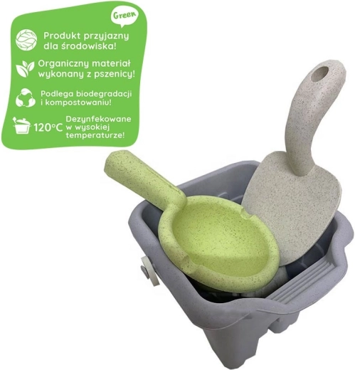 Scopri il divertimento nella sabbiera con il set ecologico WOOPIE GREEN. Lavorazione di qualità, materiale resistente e forme studiate rendono questo set il compagno perfetto per ogni avventura nella sabbia. Il materiale organico a base di fibre di grano è completamente biodegradabile e compostabile, sostenendo un gioco ecosostenibile senza compromessi.