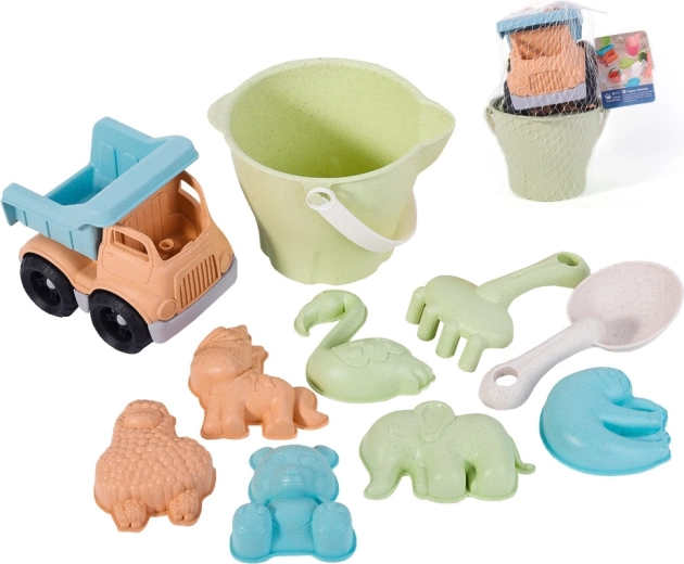 Scoprite un gioco divertente e al tempo stesso sostenibile con il set da sabbia per bambini WOOPIE GREEN. Questo set da 11 pezzi in moderne tonalità pastello include secchiello, annaffiatoio, camion ribaltabile, palette e formine a forma di animali per costruire e creare. Realizzato in materiale organico e biodegradabile a base di paglia di grano e adatto al compostaggio. Grazie ai bordi arrotondati, alle impugnature confortevoli e alla disinfezione a 120 °C, il set è sicuro per i bambini ed è ideale per la sabbiera, la e il giardino.