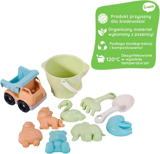 Il set ecologico da sabbia WOOPIE GREEN offre ai bambini tante possibilità per creare e scoprire il mondo all’aperto. Il design pastello è piacevole alla vista, mentre i materiali resistenti sono facili da pulire e adatti al gioco quotidiano. Include anche un robusto camion ribaltabile per trasportare sabbia e piccoli tesori.