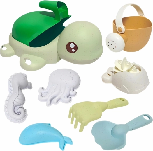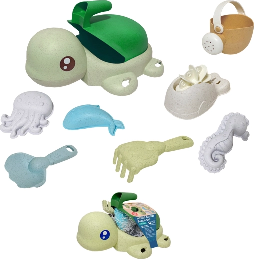 Cosa trovi nel set: secchiello/tartarughina con ventose, annaffiatoio, paletta, rastrello, cucchiaio, ruota mulinello e 3 formine (animali marini). I colori pastello e le forme arrotondate sono adatti anche ai più piccoli dai 3 anni. Il materiale è biodegradabile e compostabile, così i bambini giocano in modo responsabile verso la natura.