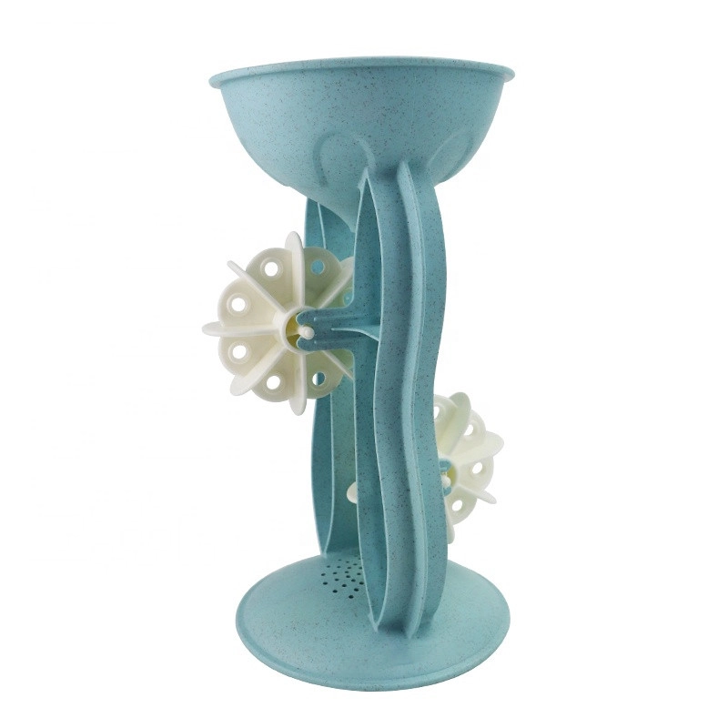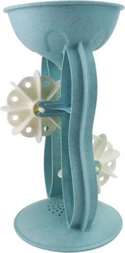 Versa la sabbia o l'acqua nell'imbuto e guarda le palette girare. I bambini imparano in modo ludico il rapporto causa-effetto e sviluppano la motricità fine.