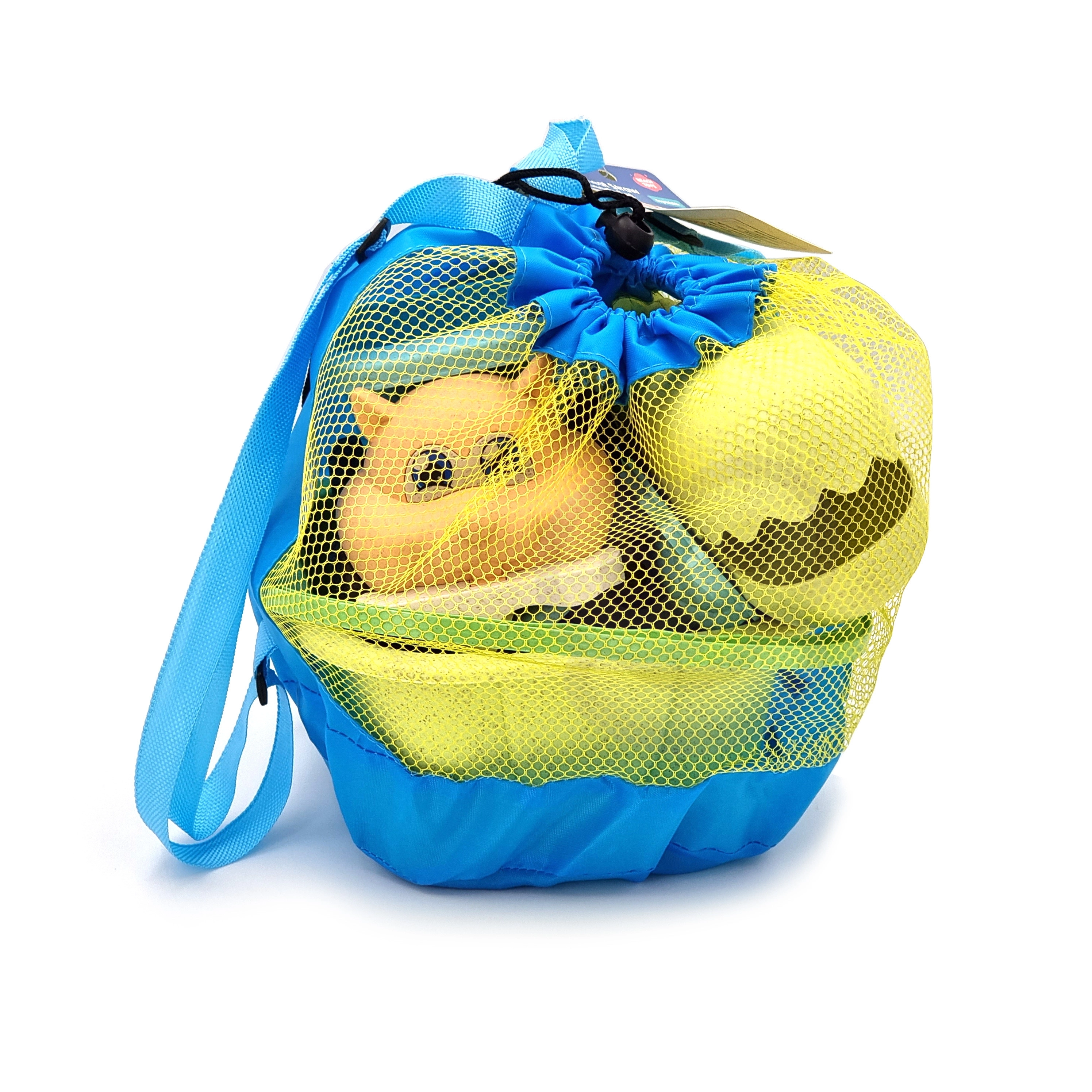 Il leggero sacco a rete funge da zainetto: trasporto facile, drenaggio e asciugatura rapidi dei giochi, meno sabbia in borsa al rientro dalla spiaggia.