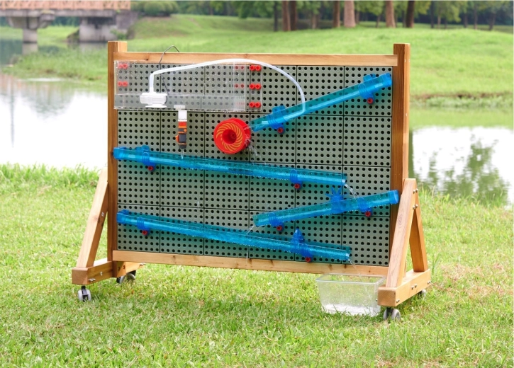 Puoi utilizzare il serbatoio da solo con lo scarico integrato per uno svuotamento semplice, oppure collegarlo a una pompa dell’acqua (non inclusa) per esperimenti ancora più dinamici. La piena compatibilità con le lavagne STEM da esterno MASTERKIDZ facilita l’installazione e la creazione di percorsi d’acqua diversificati.