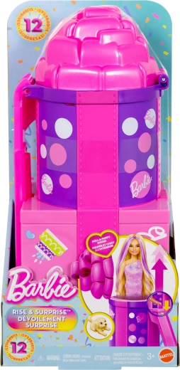 Scarta la gioia passo dopo passo: aprendo la scatola “regalo” BARBIE entra in scena e dall’imballaggio si dispiega uno scivolo su cui può scendere il tenero cagnolino direttamente alla festa di compleanno. Nei sacchettini a sorpresa i bambini troveranno decorazioni, dolcetti e accessori per un’atmosfera perfetta.