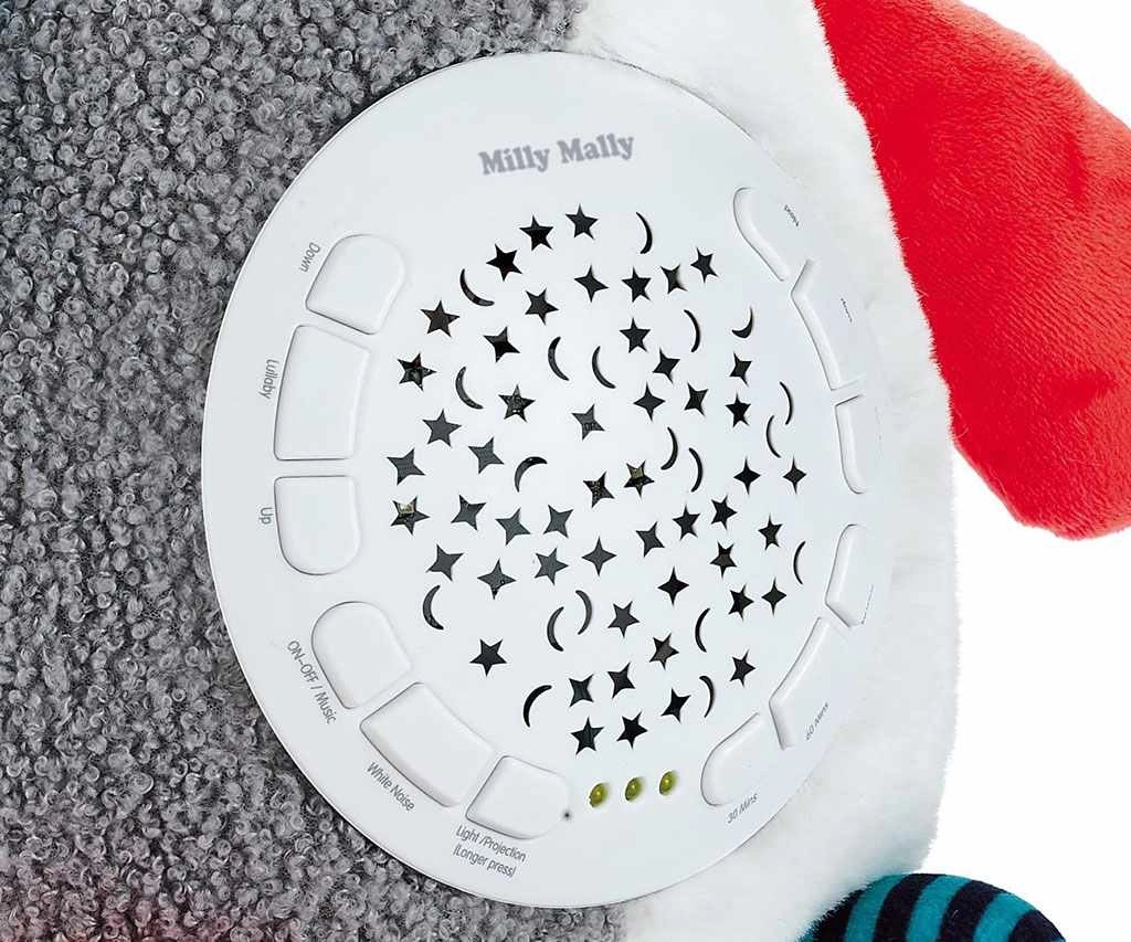 La lampada notturna di peluche panda con proiettore MILLY MALLY crea un’atmosfera rilassante per favorire il sonno. Le delicate proiezioni di stelle e luna in vari colori sono accompagnate da melodie calmanti e suoni della natura che tranquillizzano naturalmente i bambini.