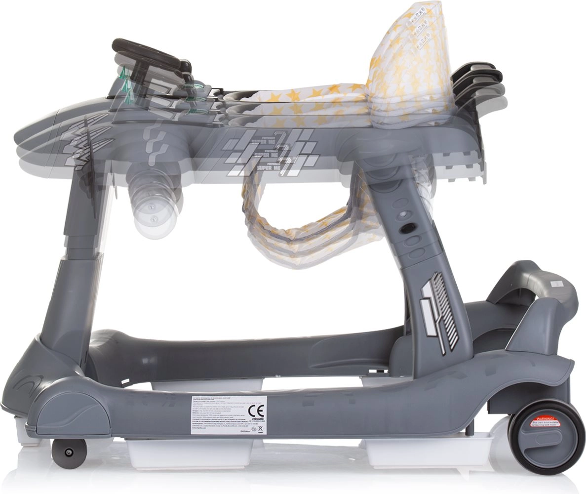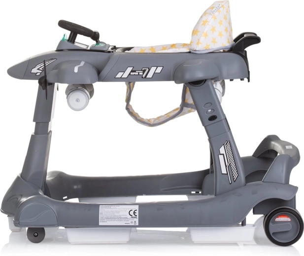 Girello interattivo 3 in 1 CHIPOLINO Airplane Grey sostiene i primi passi, l’equilibrio e la coordinazione del bambino già dai 6 mesi. Offre un pannello sonoro colorato con giochi, una base ampia e stabile, 3 livelli di altezza della seduta e la possibilità di trasformazione in giocattolo spingibile – aeroplano. Non mancano regolazione della velocità, blocco delle ruote posteriori e freni di sicurezza per la massima protezione.