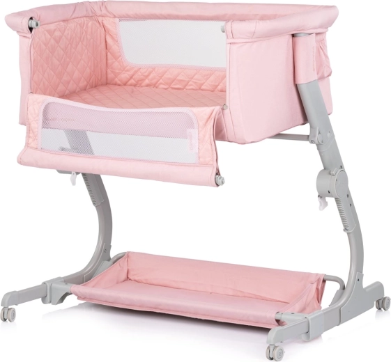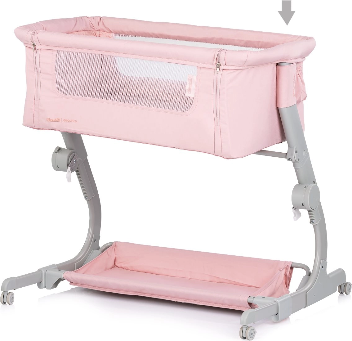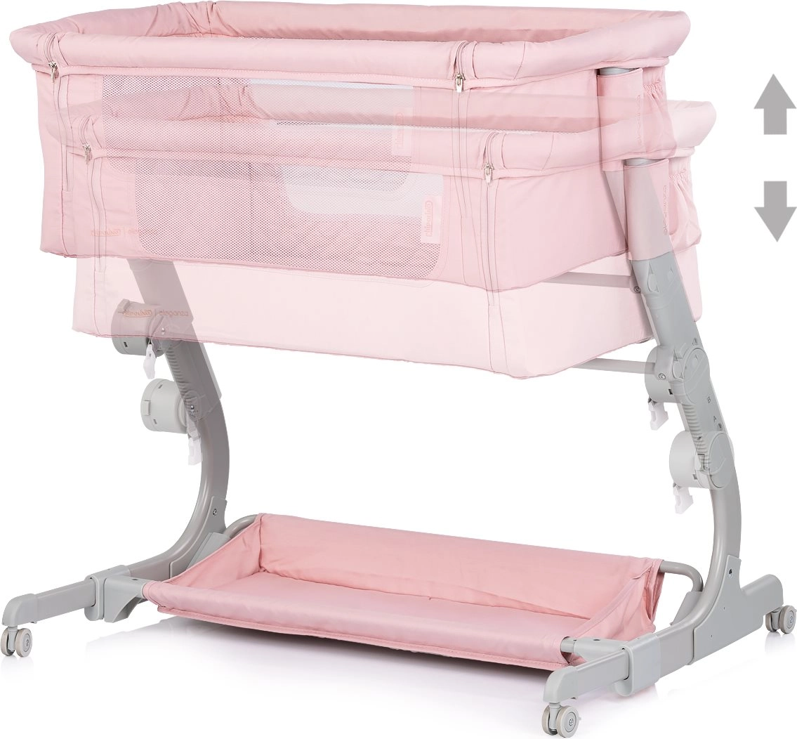 La pratica culla e letto aggiuntivo 2 in 1 CHIPOLINO Eleganza in una delicata tonalità rosa offre al bebè un luogo sicuro e accogliente per dormire e riposare. Grazie a 3 livelli di altezza, ai lati in rete per supervisione e circolazione dell’aria, alle ruote bloccabili e alla struttura in metallo leggera ma stabile, è ideale per l’uso quotidiano e in viaggio – inclusa la borsa da trasporto compatta.