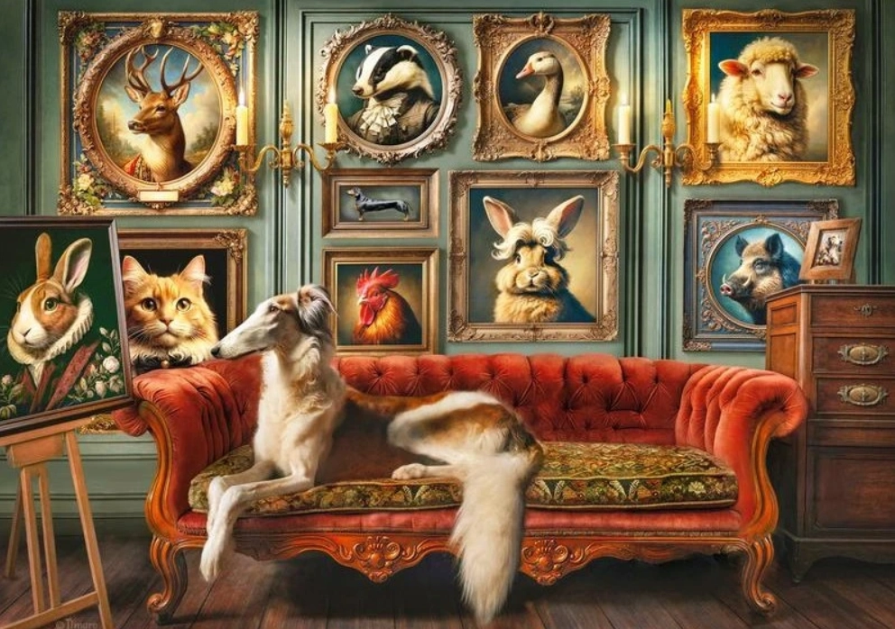 Scopri l’elegante motivo “Zoo aristocratico”, che unisce sottile ironia a un’elaborazione dettagliata. Il puzzle da 1000 pezzi è un’ottima scelta sia per principianti che per esperti che cercano una sfida equilibrata e una lavorazione di qualità. Una volta completato, otterrai un’immagine di circa 70 × 50 cm, adatta per essere incorniciata ed esposta.