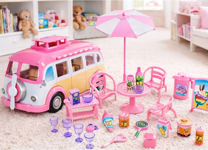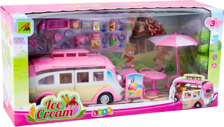 Il camper–gelateria è un set di gioco ben studiato che unisce veicolo, caffetteria e chiosco di dolci. Aprendo le porte e ribaltando il tetto si ottiene un interno facilmente accessibile con bancone, mensoline e spazio per preparare e servire le bontà. Grazie ai colori vivaci e ai dettagli realistici, i bambini possono creare facilmente le proprie storie.