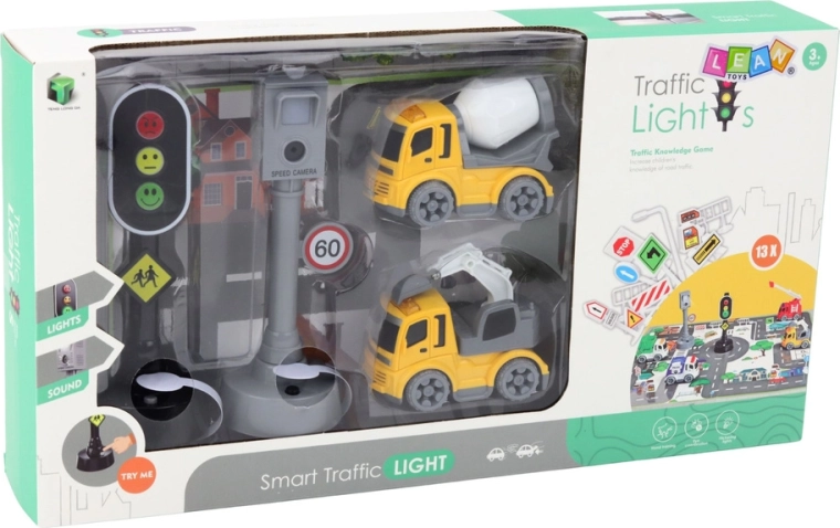 Scopri un set divertente ed educativo per piccoli conducenti: semaforo con luci e suoni realistico, autovelox, segnali stradali, due camioncini da costruzione e un tappetino stradale. I bambini imparano in sicurezza le regole del traffico, allenano il pensiero logico e la coordinazione mano-occhio e si divertono per ore con il gioco creativo.