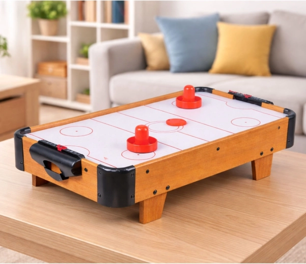 Goditi un divertimento veloce e avvincente con il compatto air hockey da tavolo per bambini. Struttura leggera e stabile, movimento fluido grazie all’air flow e alimentazione a batterie garantiscono un uso semplice ovunque. Il contapunti analogico favorisce una competizione leale e sviluppa riflessi e coordinazione.