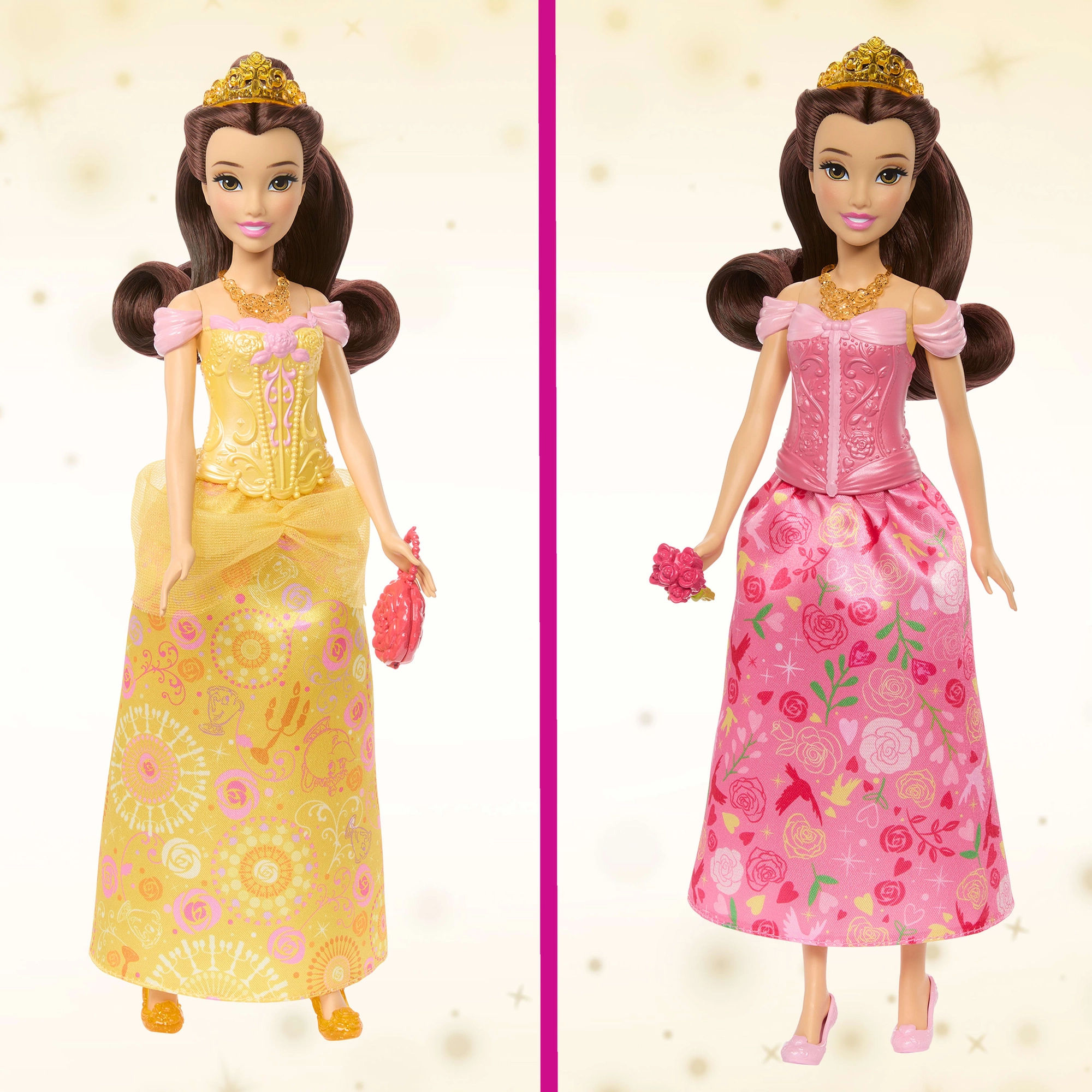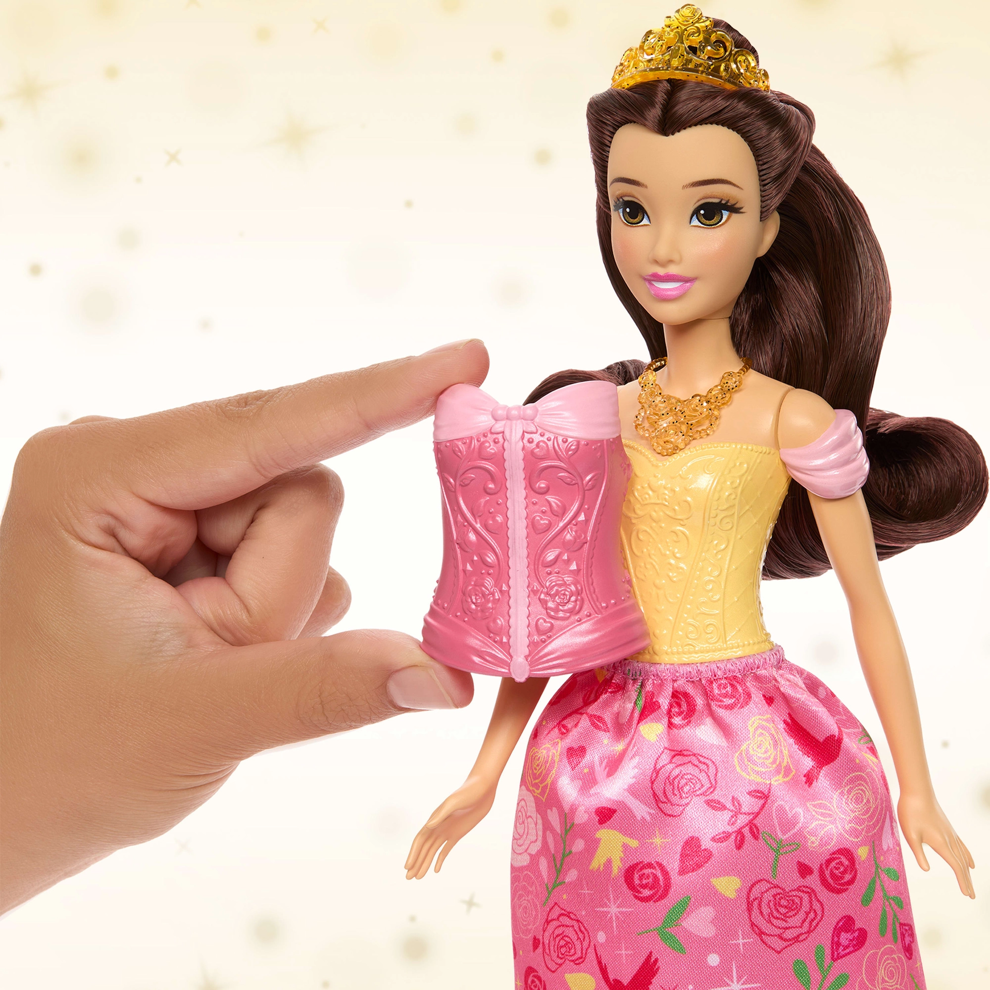 La bambola consente un facile cambio di look: basta sostituire corpetto e gonna e dall’incontro pomeridiano si passa subito a un ballo incantato. I capelli lunghi si possono pettinare e decorare con la tiara; gli accessori favoriscono il role-play e, grazie ai punti di articolazione, Belle posa alla perfezione in ogni avventura.