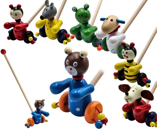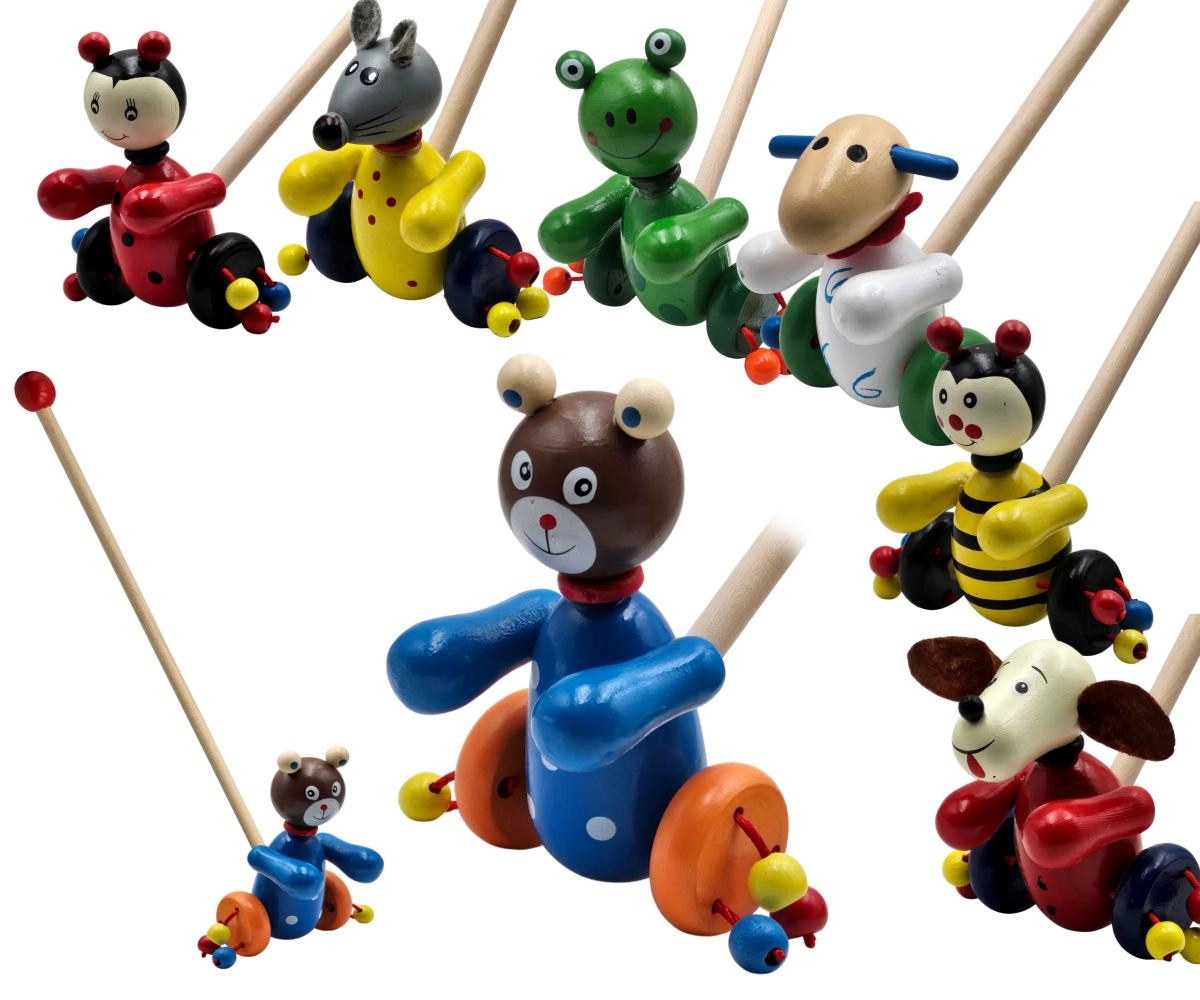 Il simpatico animaletto di legno su bastone porta ai bambini la gioia del movimento e del gioco. Quando viene trainato, le ruote girano e il giocattolo si muove in modo fluido. Ha un'altezza di 48 cm, è disponibile in sei varianti ed è adatto ai bambini dai 3 anni. Legno resistente, facile da manovrare e supporto alla motricità lo rendono una scelta perfetta per il divertimento quotidiano.