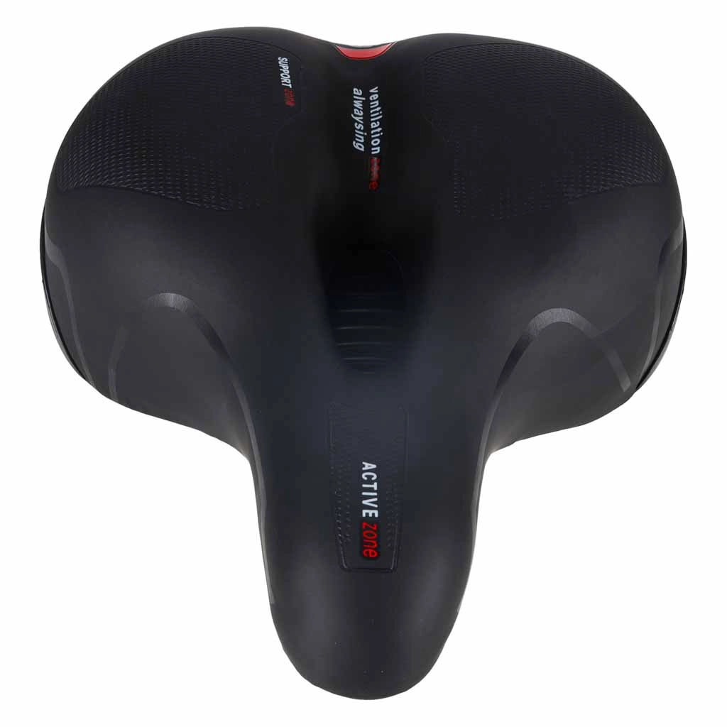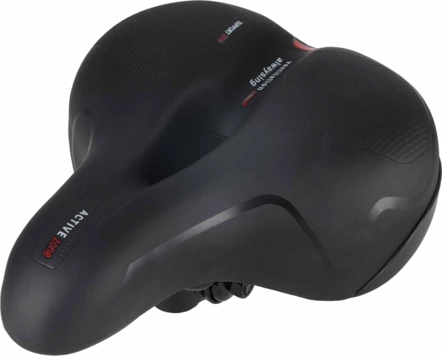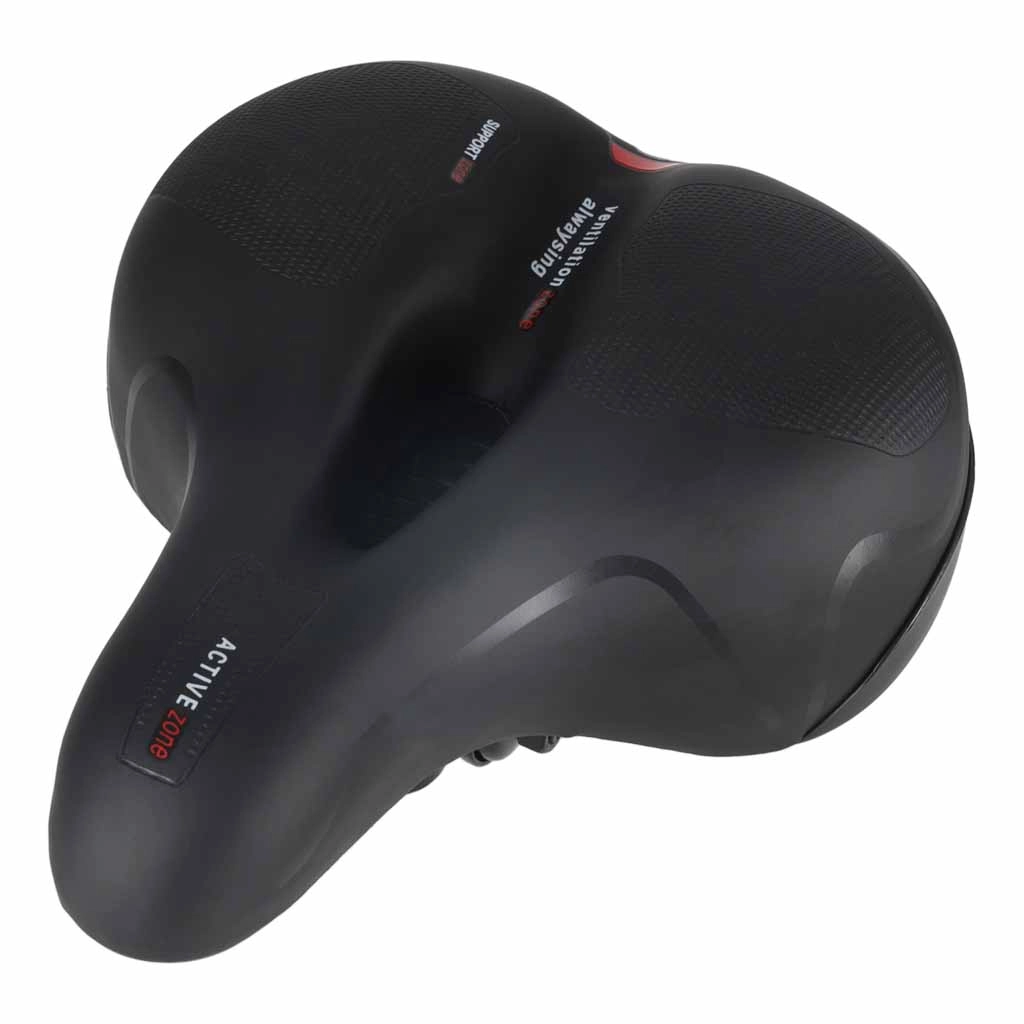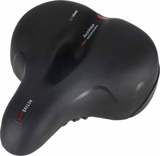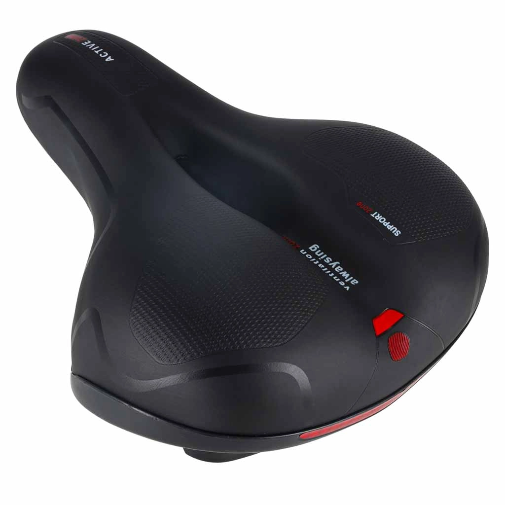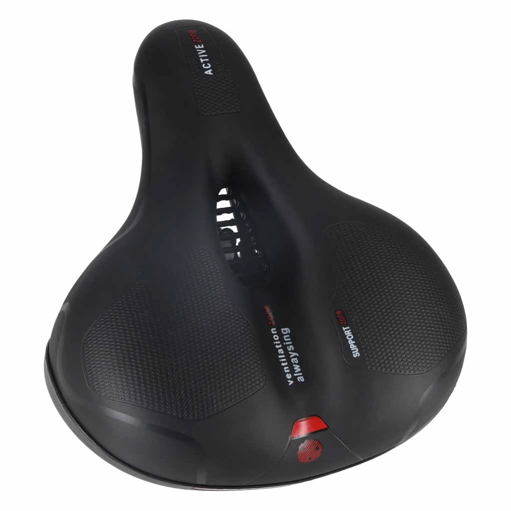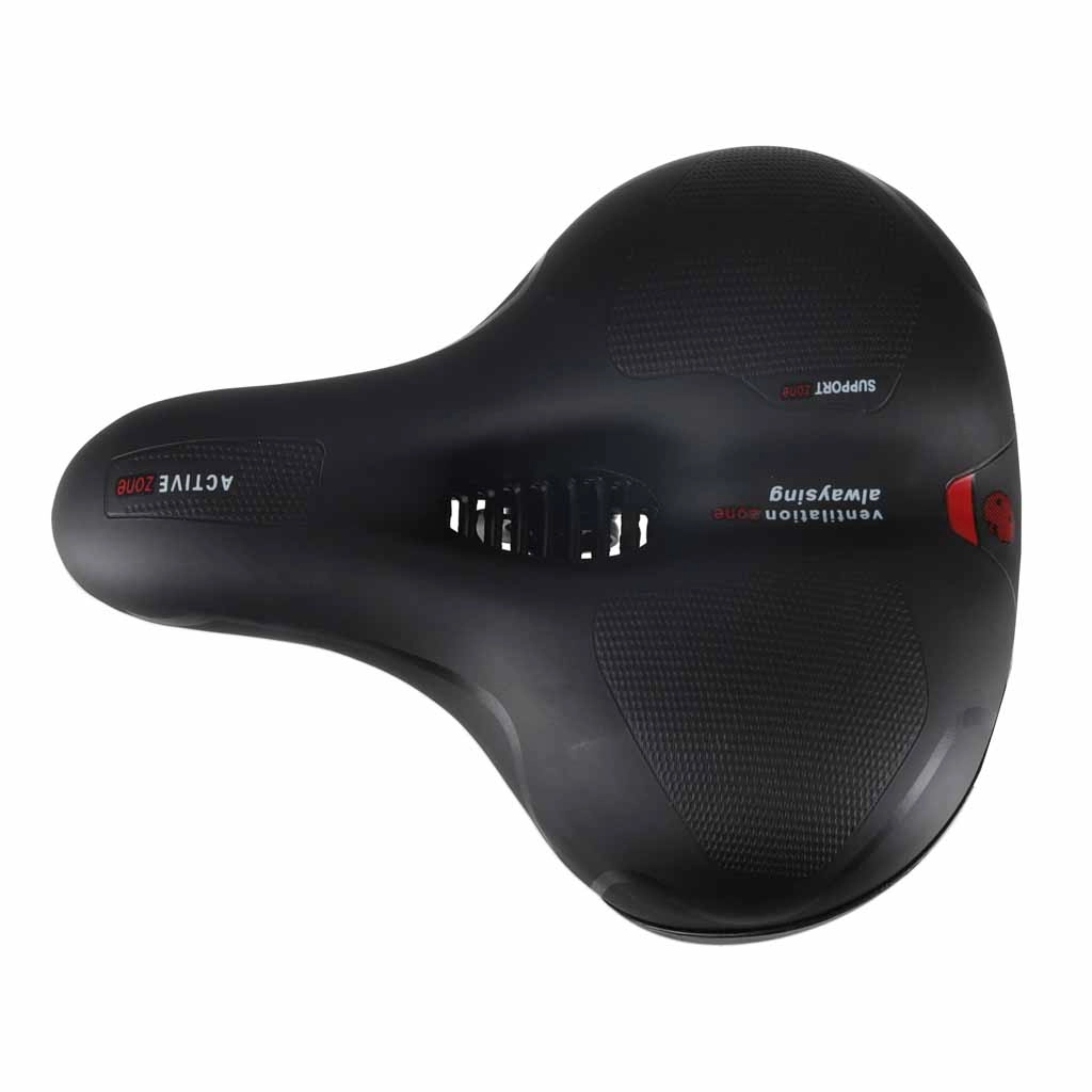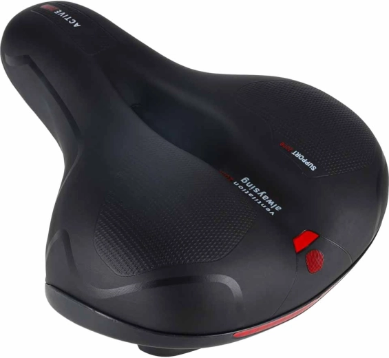 Comoda sella da bicicletta per uso urbano e trekking, con ampia forma ergonomica, imbottitura in schiuma elastica e doppia ammortizzazione a molle per una pedalata fluida senza punti di pressione. Grazie al canale di ventilazione centrale la sella resta traspirante, la superficie impermeabile in pelle PU resiste alla pioggia e il catarifrangente posteriore integrato aumenta la visibilità dopo il tramonto.