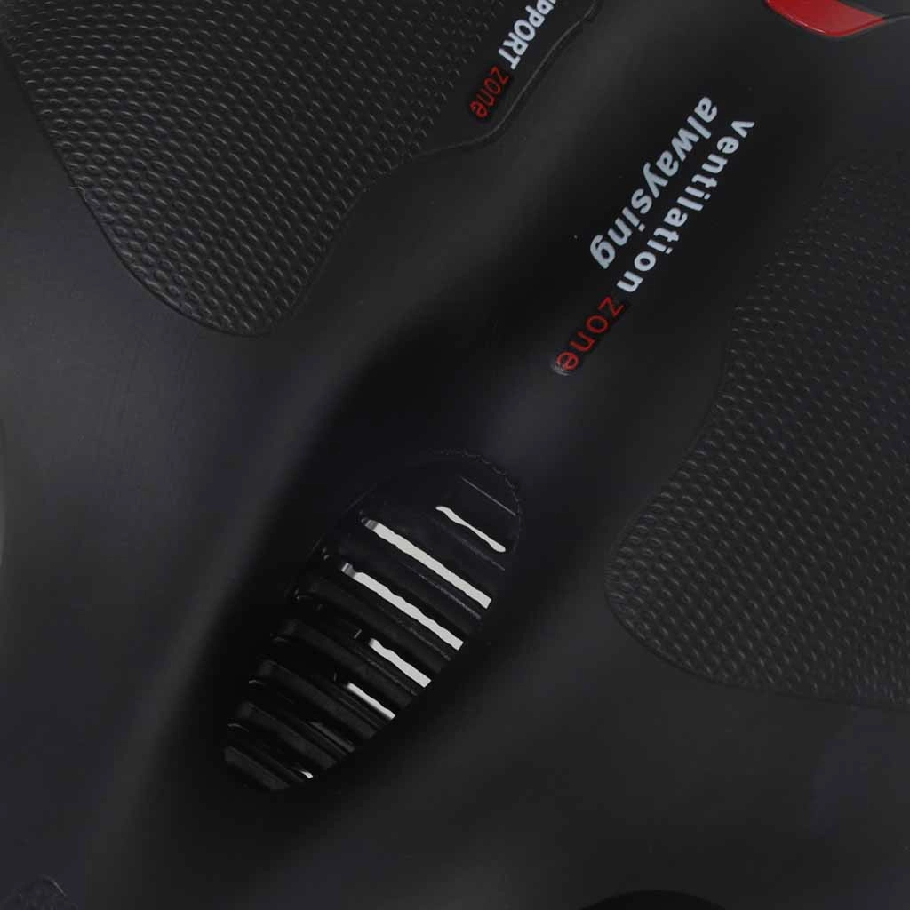 Il canale di ventilazione centrale allevia la pressione nelle zone sensibili e migliora il flusso d’aria per maggiore comfort durante le uscite più lunghe.
