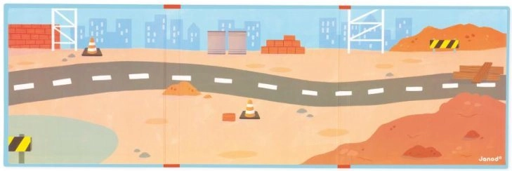 Il formato leggero e sottile con apertura semplice entra nello zainetto e offre ai bambini lunghi minuti di gioco creativo senza disordine. Il tema del cantiere favorisce la conoscenza del mondo della tecnologia e dei mezzi da lavoro in modo ludico.