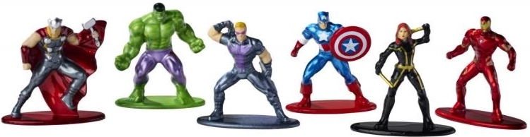 6 mini figure in metallo (Captain America, Iron Man, Hulk, Black Widow, Hawkeye, Thor)