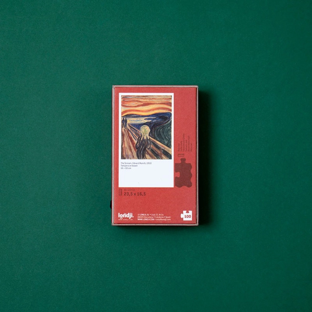 Puzzle tascabile con l’iconico soggetto de L’Urlo che offre 100 pezzi resistenti in un formato compatto, ideale per i viaggi e per momenti di tranquilla concentrazione. Perfetto come piccolo regalo, allena la pazienza e la percezione visiva.