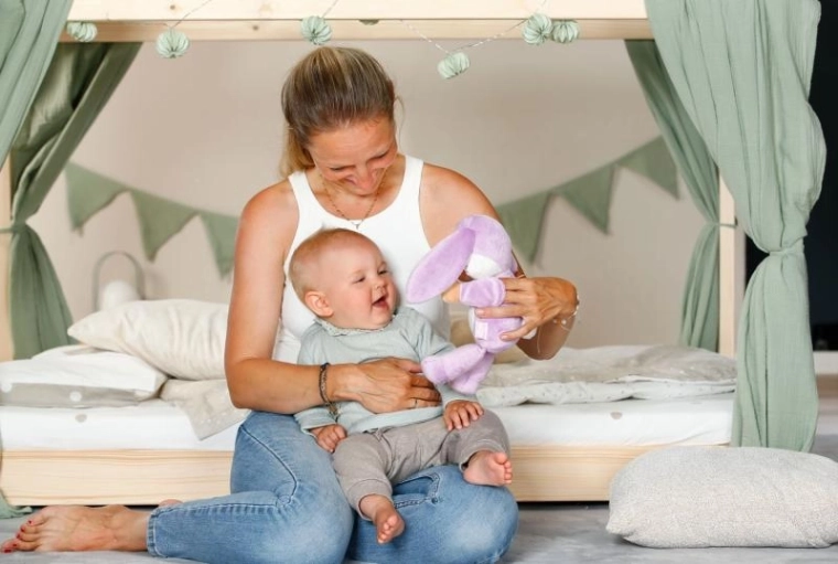 Dettagli minimalisti ma giocosi – orecchie lunghe, ricami e texture delicate – favoriscono la percezione sensoriale, le coccole e il rilassamento. Il Coniglietto è perfetto come prima bambola per neonati fin dalla nascita e offre stimoli delicati per lo sviluppo della motricità e della fantasia.