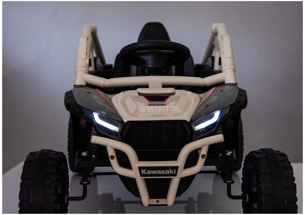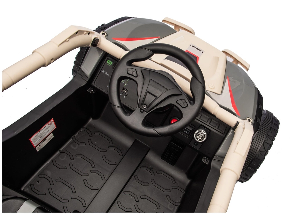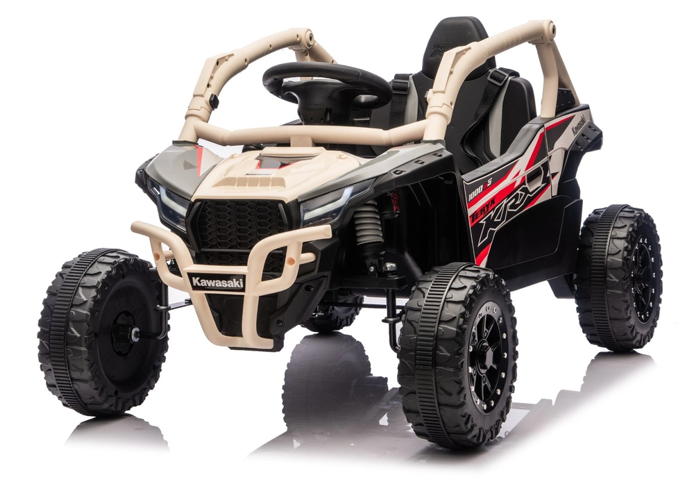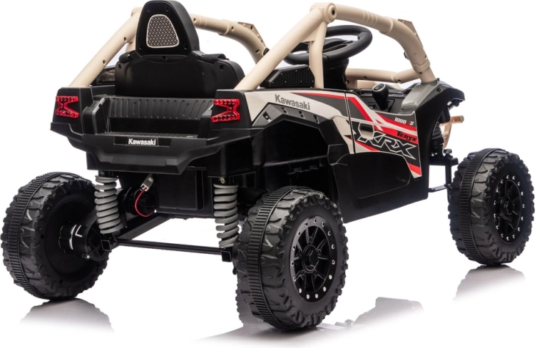 Robusta auto elettrica per bambini ispirata alla off‑road buggy KAWASAKI KRX con potente trazione 24V, sedile a due posti e ruote da fuoristrada con battistrada profondo per un divertimento all’aperto. Non mancano roll‑bar protettivo, sospensioni migliorate e volante realistico con comandi per un gioco sicuro e avventuroso.