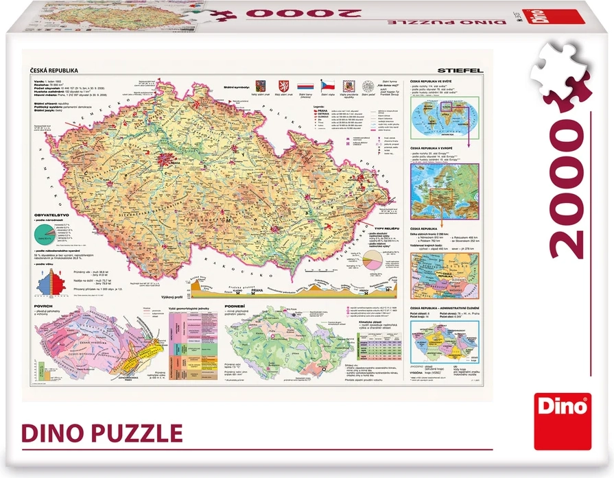 Il grande puzzle con il motivo della mappa della Repubblica Ceca è la scelta ideale per gli amanti della geografia, per il montaggio in famiglia e anche come decorazione da parete. La mappa stampata con precisione e dai dettagli chiari vi permette di esplorare città, regioni e curiosità del nostro Paese durante un’attività di assemblaggio divertente.