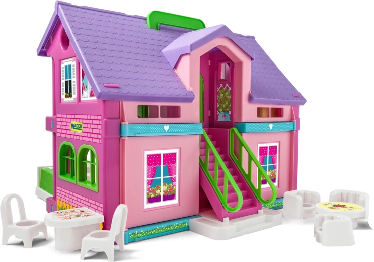 Questa casa delle bambole del marchio Wader offre ai bambini spazio per fantasia e gioco di ruolo. Grazie alla struttura aperta, il gioco è comodo da qualsiasi lato e i bambini raggiungono facilmente tutte le stanze.