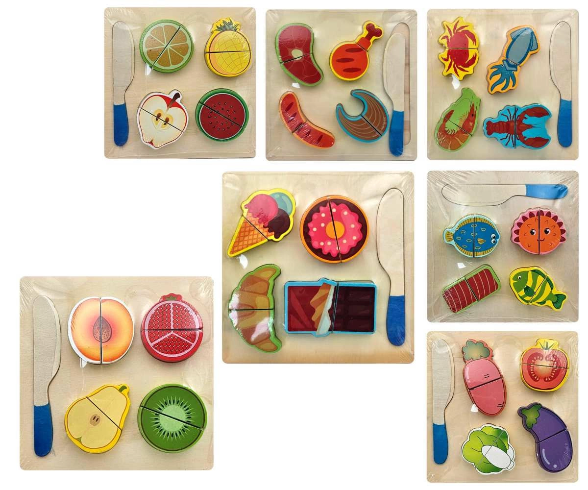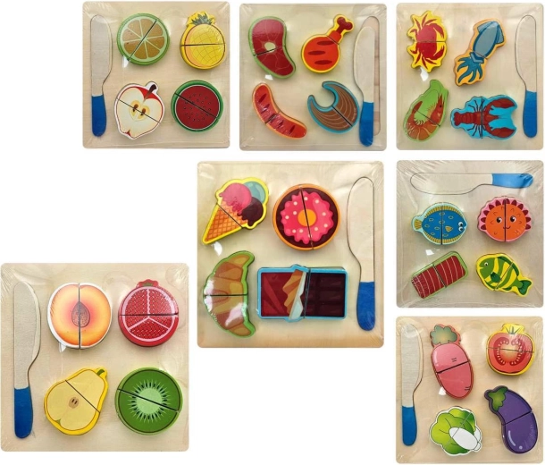 Il set è disponibile in diversi temi, ad esempio frutta, verdura o prodotti da forno. Ogni pezzo è realizzato in legno resistente con bordi lisci per un gioco sicuro. Il prezzo si riferisce a un singolo pezzo/variante – ideale per ampliare gradualmente la collezione di alimenti del bambino.