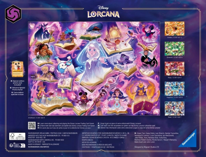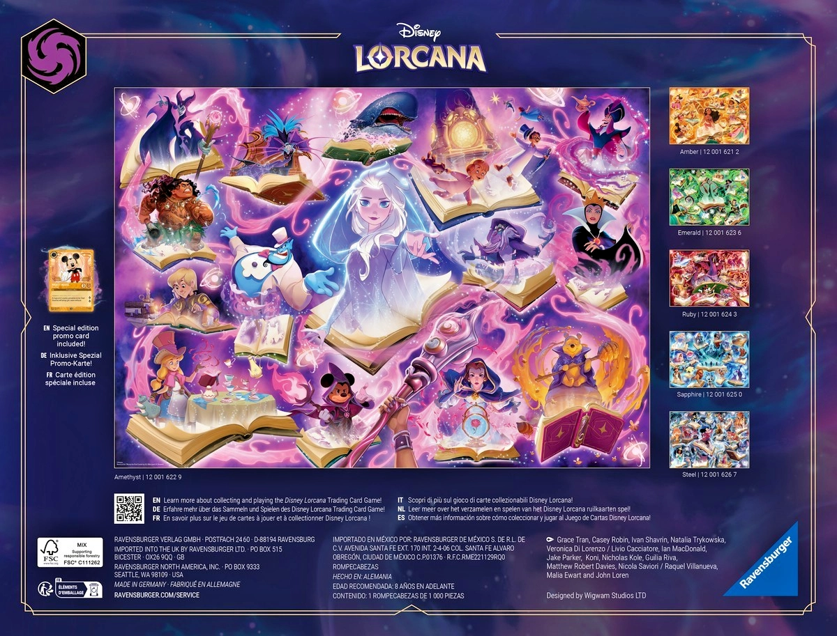 Scopri il magico mondo di DISNEY LORCANA con il puzzle RAVENSBURGER da 1000 pezzi. Taglio di precisione, pezzi resistenti e il magnifico soggetto “Glimmers of the Realm: Ametista” garantiscono montaggio rilassante, dettagli nitidi e incastro perfetto di ogni pezzo.