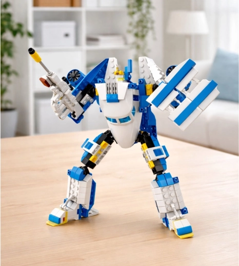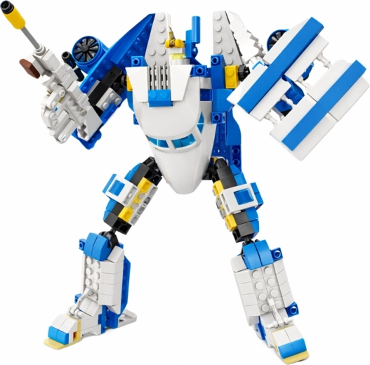 Con 417 pezzi puoi costruire un aereo passeggeri dettagliato con parti apribili oppure un robot dinamico con articolazioni. Doppio divertimento senza bisogno di set aggiuntivi.